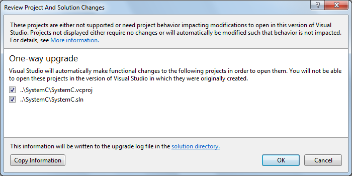 SystemC met Visual Studio Express 2013 for Windows Desktop