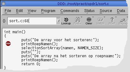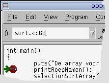 Als eerste voorbeeld gaan we het programma sort.c debuggen.