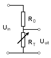 De temperatuur wordt gemeten met behulp van een NTC weerstand WNC2013 van Western Electronic Components Corporation. Deze NTC weerstand is opgenomen in de volgende schakeling: