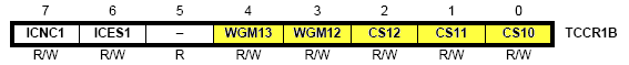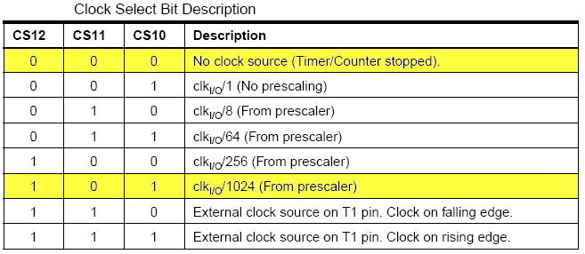 CS10 bits in het TCCR1B register (Klokfrequentie