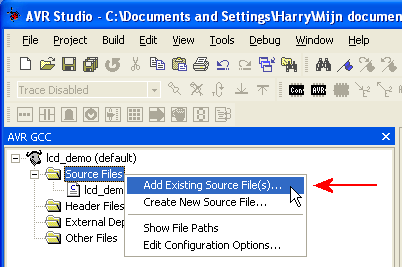 Voeg de file lcd.c toe aan de source files van het