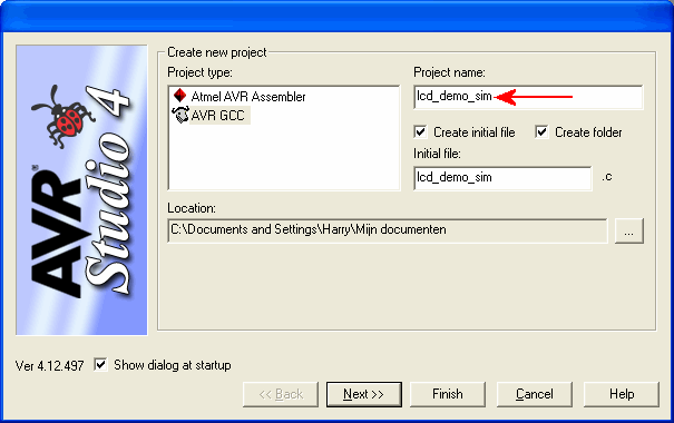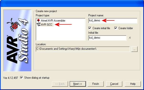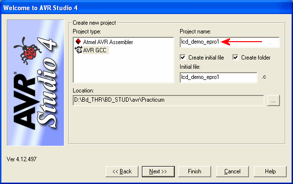 Maak een nieuw AVR Studio AVR GCC project lcd_demo.