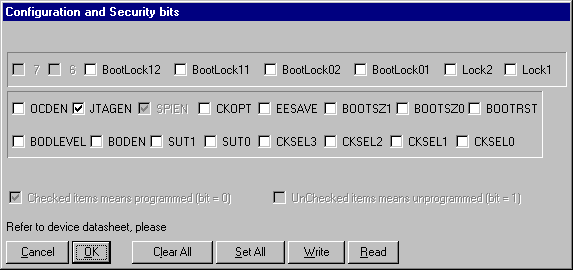 Kies menuoptie: Command - Security and Configuration Bits... Klik