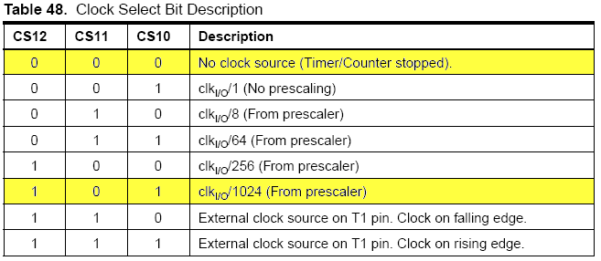 CS10 bits in het TCCR1B register (Klokfrequentie