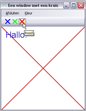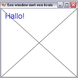 Helaas staan de knoppenbalk en de statusbalk over het kruis heen getekend. Dit kunnen we oplossen door het kruis niet rechtstreeks op de Form te tekenen maar gebruik te maken van het Panel component: