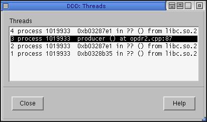 De toestand van de verschillende threads kan ook zichtbaar gemaakt worden