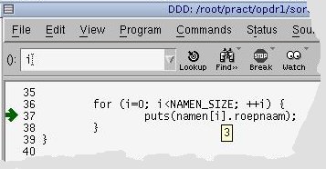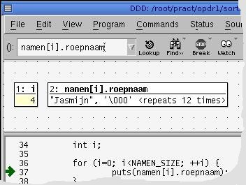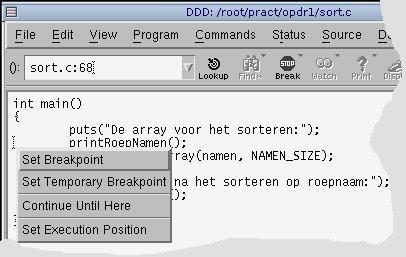 Als eerste voorbeeld gaan we het programma sort.c debuggen.