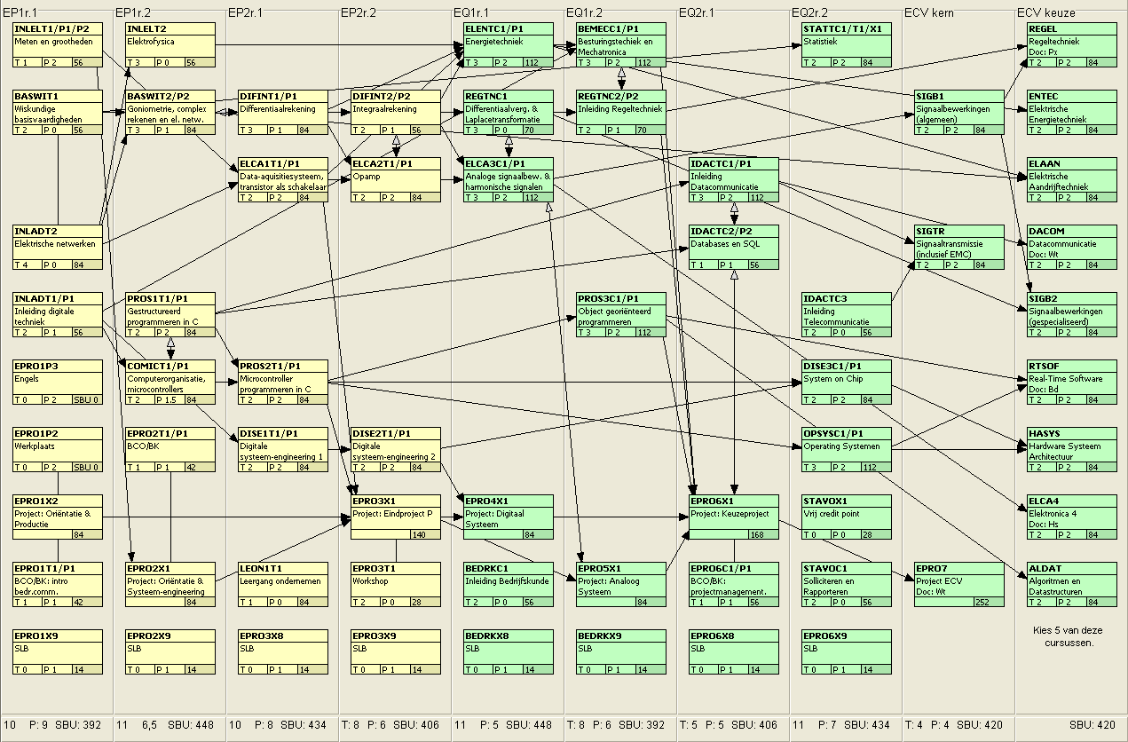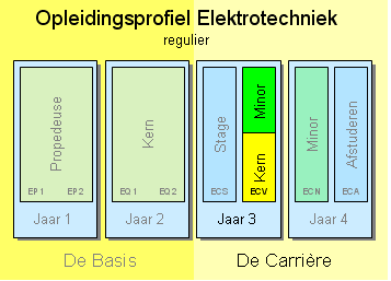 De Opleiding Elektrotechniek bestaat uit twee delen: het basisdeel en het carrièredeel. Het carrièredeel beslaat 4 semesters: ECS (stage), ECV (voorjaar), ECN (najaar) en ECA (afstuderen). In het carrièredeel willen we de studenten veel keuzemogelijkheden geven. Om deze reden zijn in dit deel van de opleiding 3 minoren van elk 15 creditpoints opgenomen: twee in semester ECN en één in semester ECV. Het semester ECV wordt alleen in het voorjaar aangeboden (vandaar de naam: Elektrotechniek Carrière Voorjaar). Als je deelneemt aan ECV dan heb je de basis van de E opleiding al gevolgd en heb je ook al stage gelopen. Als reguliere student volg je ECV na de stage maar als versnellende (of vertraagde) student volg je ECV na ECN.