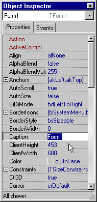 eerder met behulp van de Object Inspector hadden aangepast.