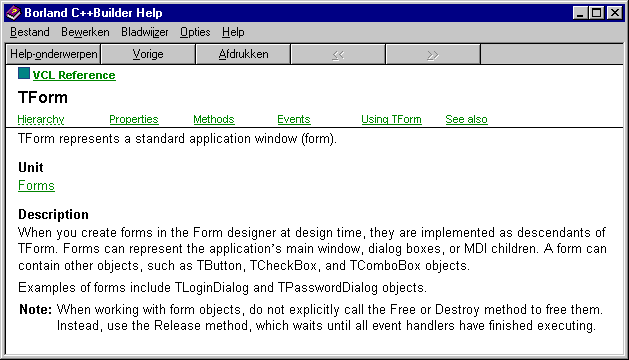 kiezen uit twee help pagina's voor TForm.