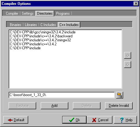 de boost library hebt geplaatst opgeven bij Tools, Compiler